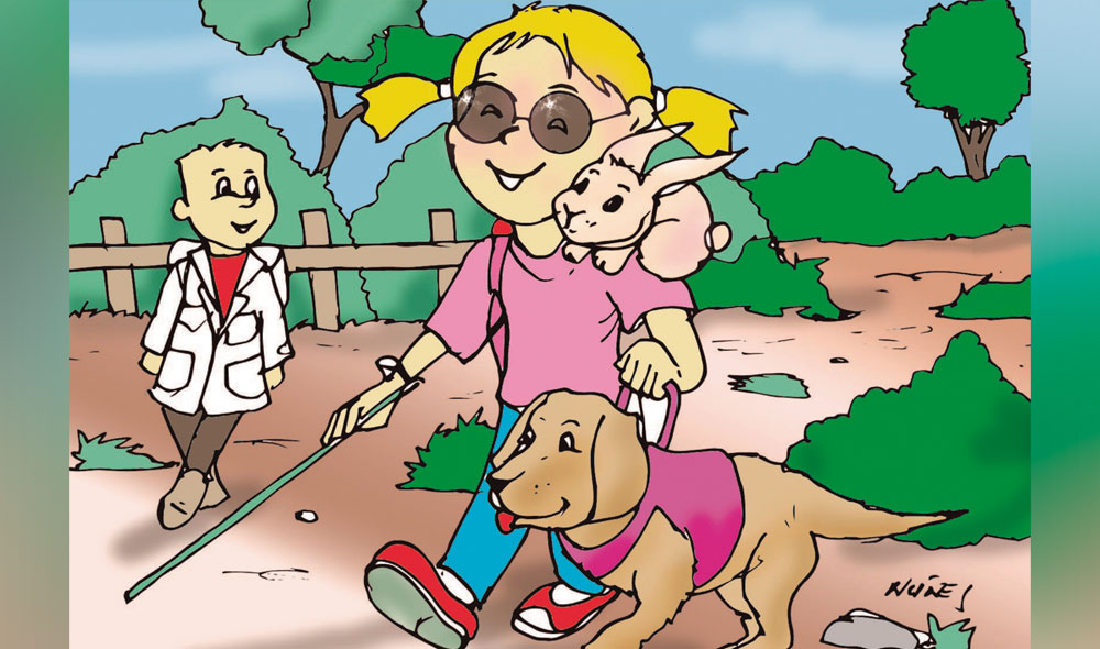 ¡Qué revuelo se armó al otro día en la escuela cuando Alma llegó con su bastón verde, con su perro Scout y una coneja a la escuela! Alma era una niña con baja visión y Scout -un inteligente y amigable perro labrador- era el lazarillo que la acompañaba a todos lados. En la escuela estaban acostumbrados a verlo y lo saludaban. Ese día ni lo miraron siquiera: todos sus compañeros -¡hasta la maestra! -querían alzar ese pompón suave que Alma tenía en sus brazos.