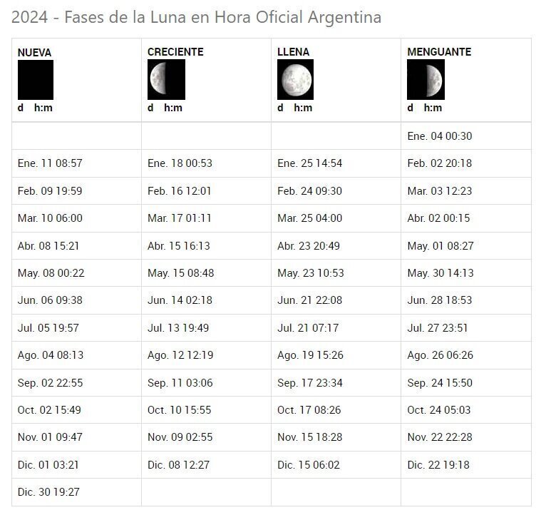 El calendario lunar 2024 que elabora el Servicio de Hidrografía Naval de la Nación, dependiente del Ministerio de Defensa, indica que el domingo 15 de diciembre habrá Luna Llena y saldrá a las 6:02 de ese día.