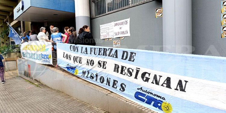 Jubilados de salud se manifestaron este martes por la mañana frente a la sede central del Instituto de Previsión Social (IPS) en Posadas, pidieron ser escuchados y reclamaron que se les liquide correctamente la movilidad jubilatoria y se les pague lo que se les debe por malas liquidaciones desde octubre del año pasado a la fecha.