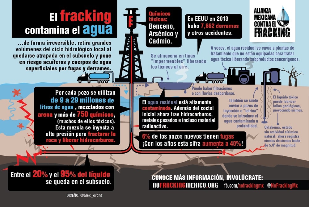 - Durante el proceso de fracturación de los suelos, es necesario el uso de grandes cantidades de agua dulce, que son necesarias para el consumo humano.
