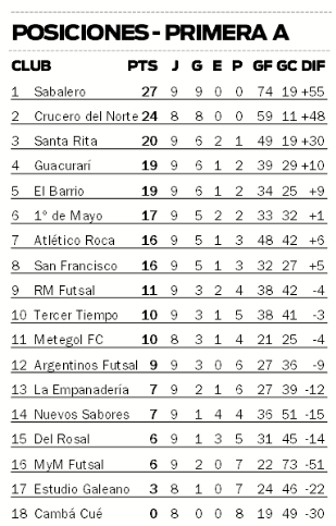 En la semana también se registró la aplastante victoria de Santa Rita sobre MyM Futsal por 13-0, mientras que 1° de Mayo hizo lo propio ante La Empanadería, por 4-1. Además, Atlético Roca derrotó a Argentinos Futsal por 6-2, mientras que San Francisco se impuso sobre Guacurarí por 4-0. En tanto, Estudio Del Rosal y Nuevos Sabores no se sacaron ventajas e igualaron 3-3.