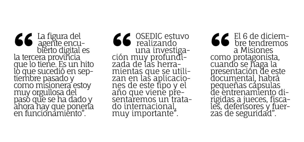 Respecto a la figura del agente encubierto digital, Breitenbruch aseguró que Misiones “es la tercera provincia que lo tiene. Es un hito lo que sucedió en septiembre pasado y como misionera estoy muy orgullosa del paso que se ha dado y ahora hay que poner en funcionamiento las herramientas y avanzar”.
