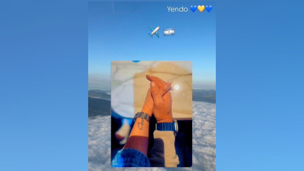 En el mismo, se puede ver a ambos tomados de la mano con la bandera de Argentina y un avión, sumados a la palabra “yendo” con corazones azules y uno amarillo, que indicarían que tienen como destino arribar al elenco de La Ribera.