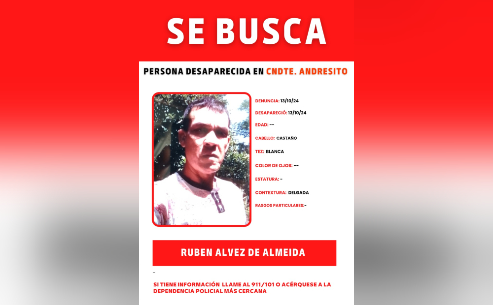 La búsqueda de un hombre de 47 años, Rubén Alvez de Almeida, desaparecido en Comandante Andresito, tomó un giro inesperado con la detención de su hermano, Eliseo. Sucede que este último no había denunciado la desaparición, y para esclarecer los hechos, la Justicia ordenó su detención y se encuentra actualmente en custodia policial.