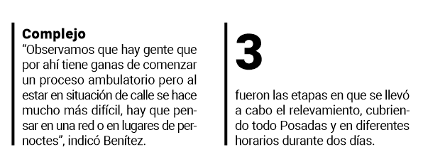 Remarcó que “previo a este relevamiento no teníamos ningún índice ni nada respecto a la población en calle de Posadas porque nos tomamos el trabajo de investigar y no existe ninguna ley, decreto u ordenanza municipal que contemple un registro de trabajo o de abordaje previo a este relevamiento.
