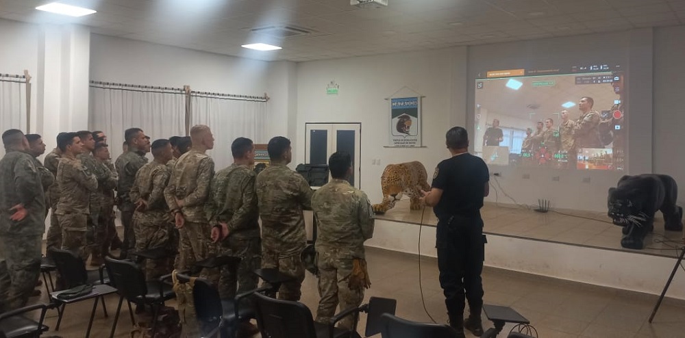 Agentes de la División de Vehículos Policiales No Tripulados (VAPONT) de la zona norte de Misiones expusieron en la Escuela Militar de Monte del Ejército Argentino sobre la importancia del uso de drones de alta tecnología que posee la Policía de Misiones para realizar trabajos en áreas con densa vegetación.