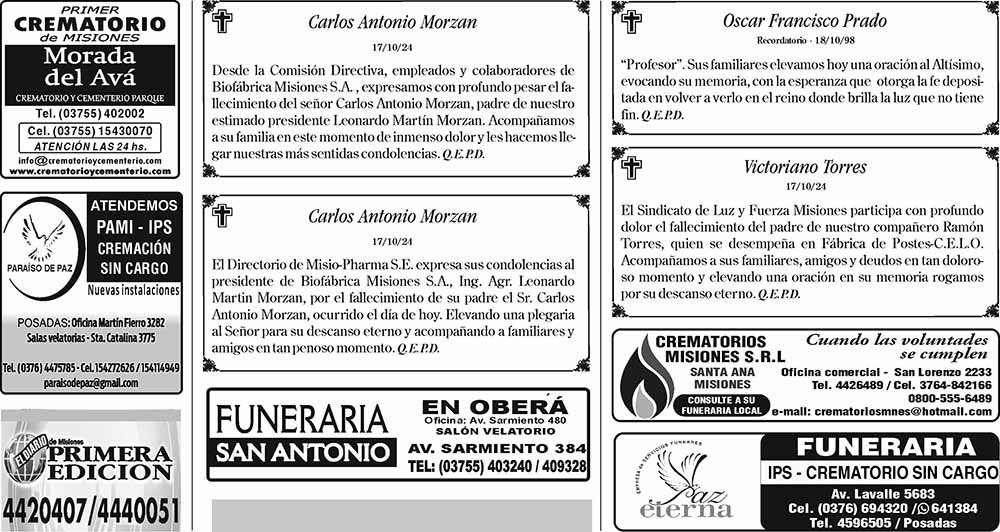Tags: Fúnebres 18-10-2024