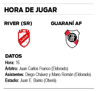 Motivado tras la victoria del debut ante Brown, Guaraní tendrá una parada complicada en Santa Rita cuando enfrente hoy a River, que tendrá su estreno en el torneo. El duelo será a partir de las 16.