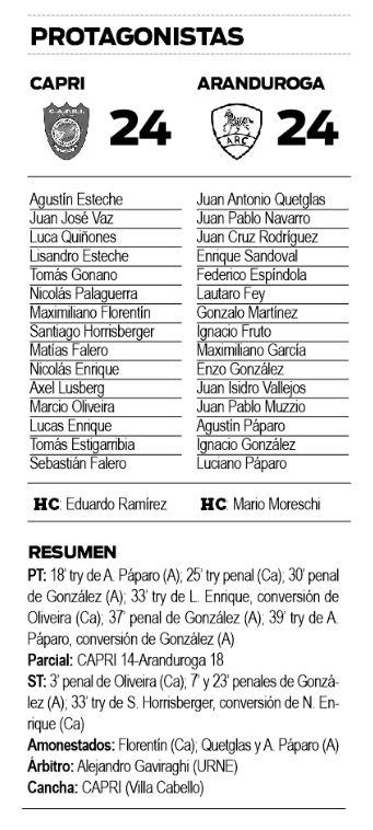 CAPRI sumó dos puntos más ayer en el Torneo Reclasificación del Nordeste, luego de igualar 24 a 24 con Aranduroga en el marco de la sexta y penúltima fecha del certamen.