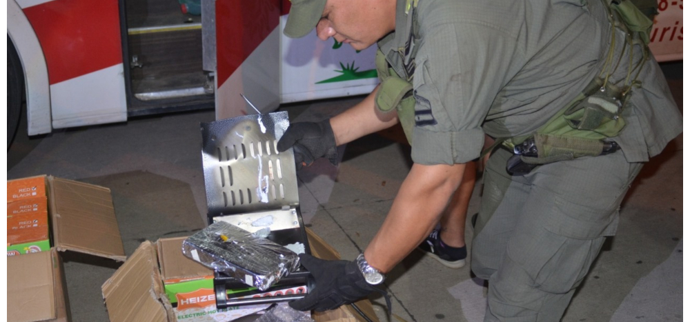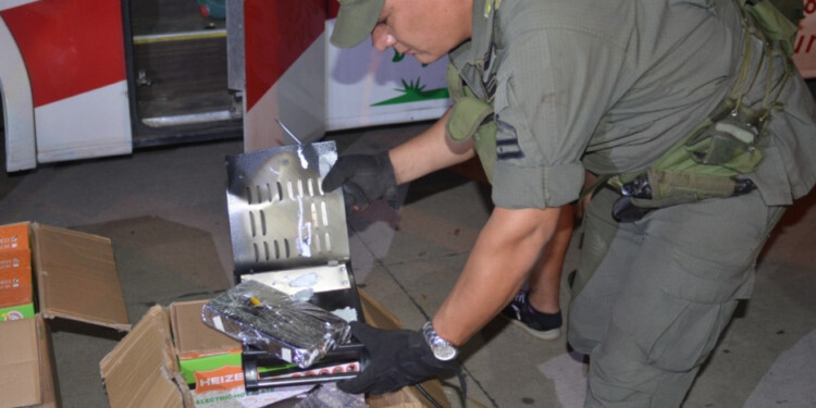 Mientras inspeccionaban un colectivo de larga distancia, provenientes de Aguas Blancas con destino Buenos Aires, se toparon con una gran cantidad de encomiendas: 42 anafes, según la descripción de la caja. Sin embargo, al pasar por un escáner se toparon con un paquete triangular sospechoso.
