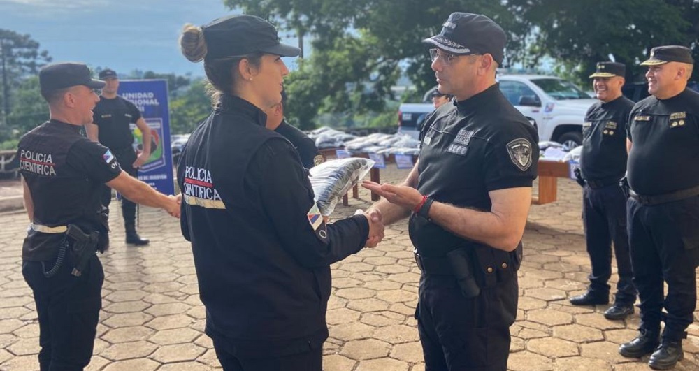 Este martes unos 200 efectivos de la Unidad Regional de Bernardo de Irigoyen recibieron nuevos uniformes de la Policía de Misiones, como parte de un programa integral de equipamiento para la fuerza de seguridad Provincial.