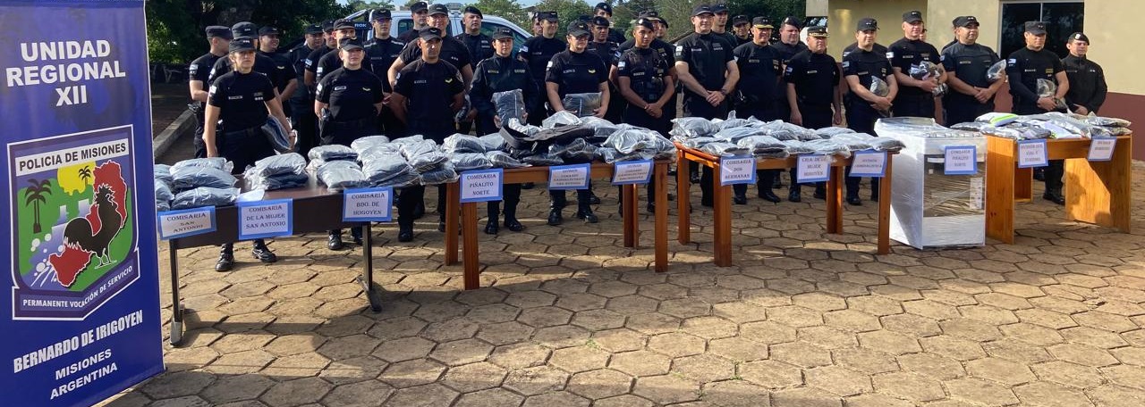 Este martes unos 200 efectivos de la Unidad Regional de Bernardo de Irigoyen recibieron nuevos uniformes de la Policía de Misiones, como parte de un programa integral de equipamiento para la fuerza de seguridad Provincial.