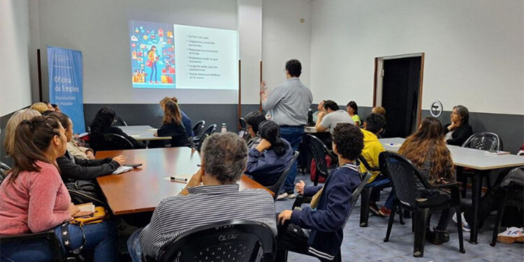 La Oficina de Empleo ofrece capacitaciones presenciales para 40 personas por curso y virtuales a través de su campus, que alcanzan a un mayor número de personas. “La virtualidad nos permite llegar a más personas, y algo importante es que todos nuestros cursos son gratuitos”, destacó Brunela.