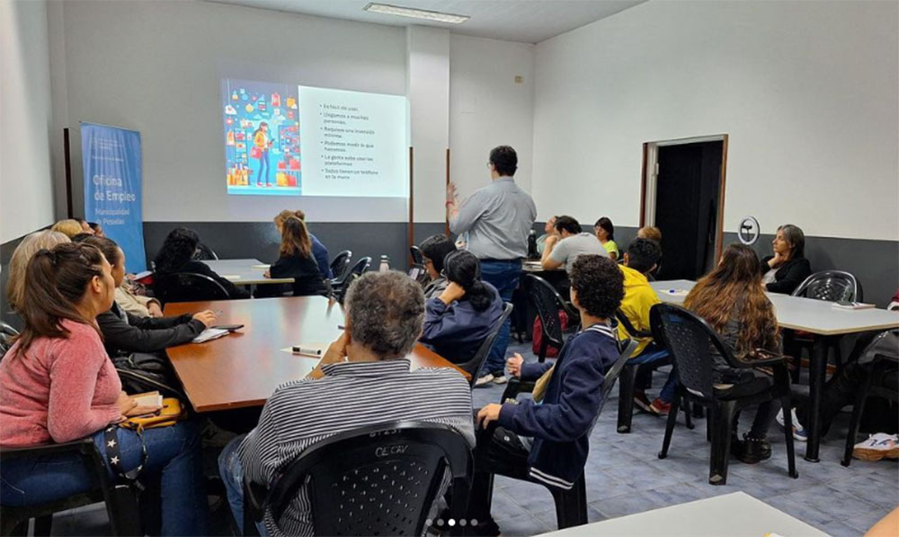 La Oficina de Empleo ofrece capacitaciones presenciales para 40 personas por curso y virtuales a través de su campus, que alcanzan a un mayor número de personas. “La virtualidad nos permite llegar a más personas, y algo importante es que todos nuestros cursos son gratuitos”, destacó Brunela.