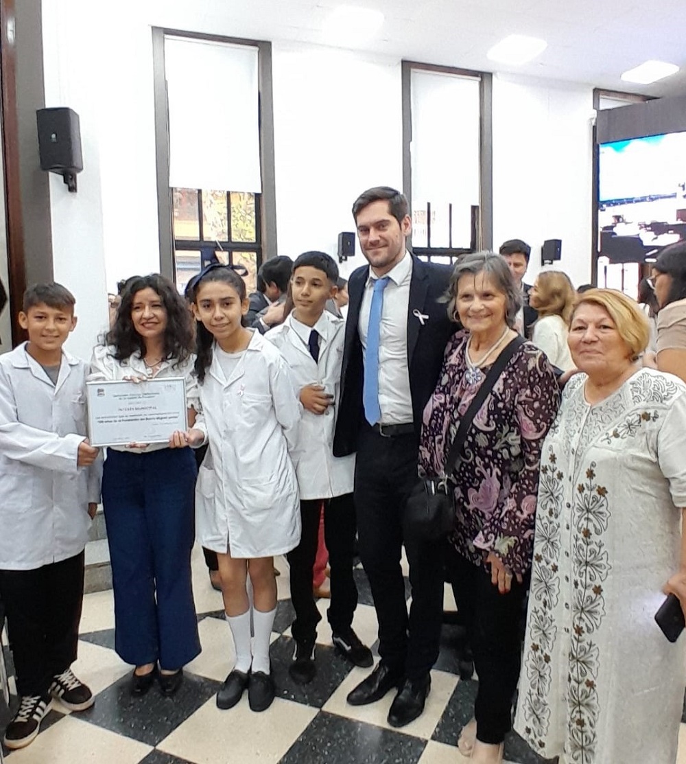Federico Emmanuel Ramos, de la Escuela N° 269 “Nuestra Señora de la Anunciación de Itapúa” recibió un reconocimiento por su participación junto a Arcángel Bladimir Méndez, de la Escuela N° 167 “Misión Cooperativa”. Los alumnos convocados fueron los de séptimo grado. Se trató de un proyecto que buscó integrar a las familias, que participaron recordando y contando a los niños como fue Miguel Lanús en su desarrollo, en el progreso, en el auge y como sigue proyectándose en la actualidad.