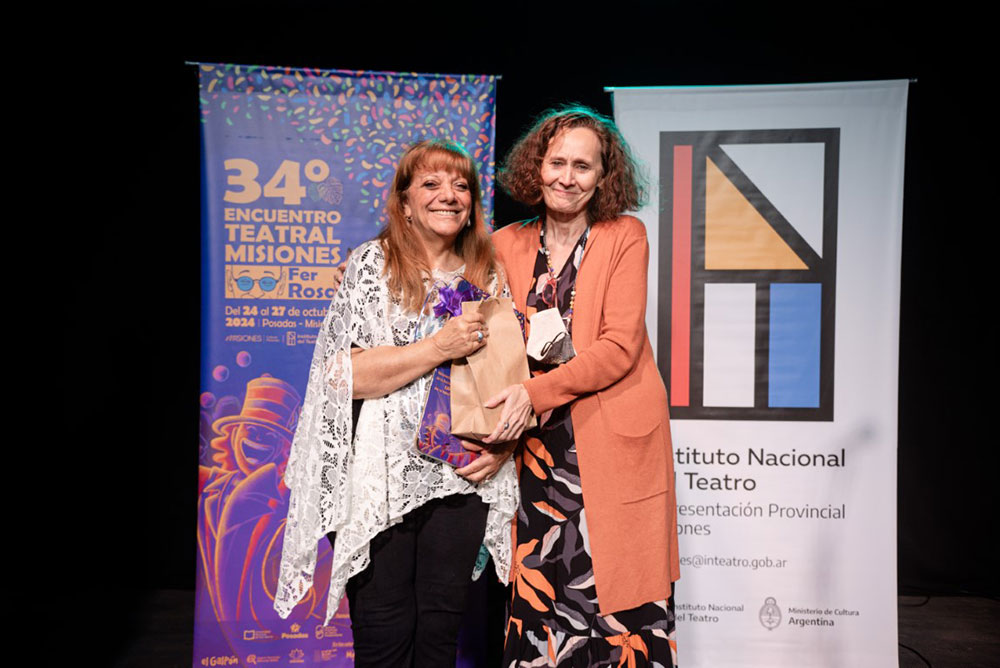 Durante el cierre, se rindió homenaje a Liliana Rizzo, una destacada actriz, docente y directora de teatro en Eldorado. Desde su llegada a Misiones en 1998, Rizzo impulsó el teatro local, fundando en 1999 la Escuela Municipal Misionera de Arte Dramático en Eldorado (EMMAD-EL) y la Asociación Civil Club de Teatro Eldorado, instituciones que han fortalecido la escena teatral en la provincia. La distinción fue entregada por Claudia Luque, representante del INT en la región.