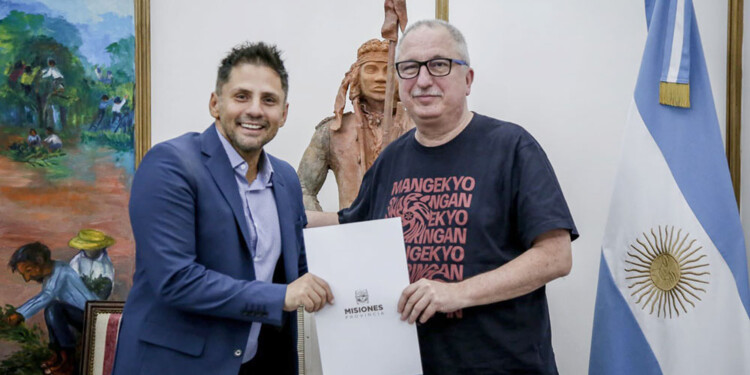 El gobernador de Misiones, Hugo Passalacqua, recibió al diseñador misionero Fabio Toñanez, quien recientemente deslumbró en las pasarelas de Buenos Aires con su colección primavera-verano de su marca “Ibraina”.