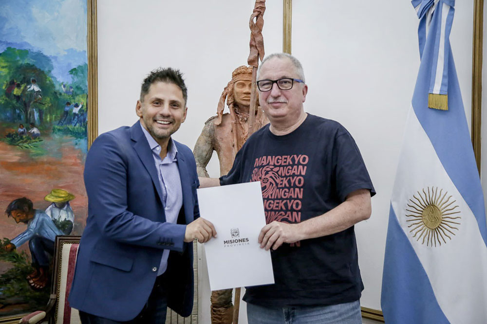Además de reunirse y dialogar con el diseñador, el gobernador Passalacqua le hizo entrega de la declaración de Interés Provincial y le agradeció por su labor que a través de sus diseños, posiciona a Misiones en el mapa de la moda internacional y a su vez permite visibilizar la calidad de la seda misionera.