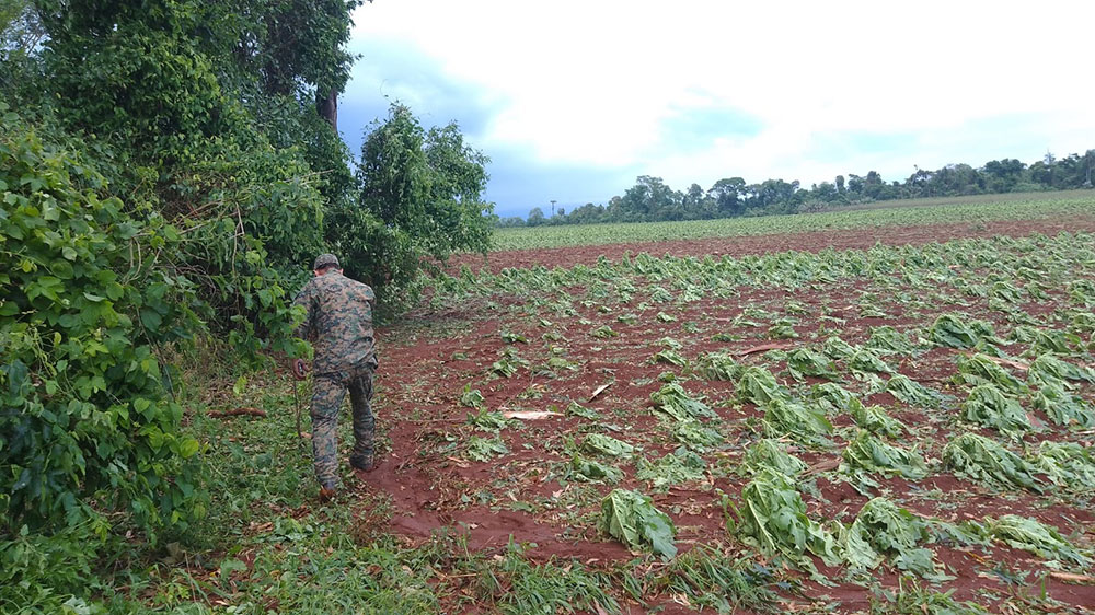 Desde la Policía de Misiones informaron de la voladura de techos y ventanas en la propiedad de un hombre de 42 años, quien sufrió la pérdida de su plantación de tabaco. También informaron que se realizan recorridas en la jurisdicción a los fines de constatar si existen otras personas damnificadas.
