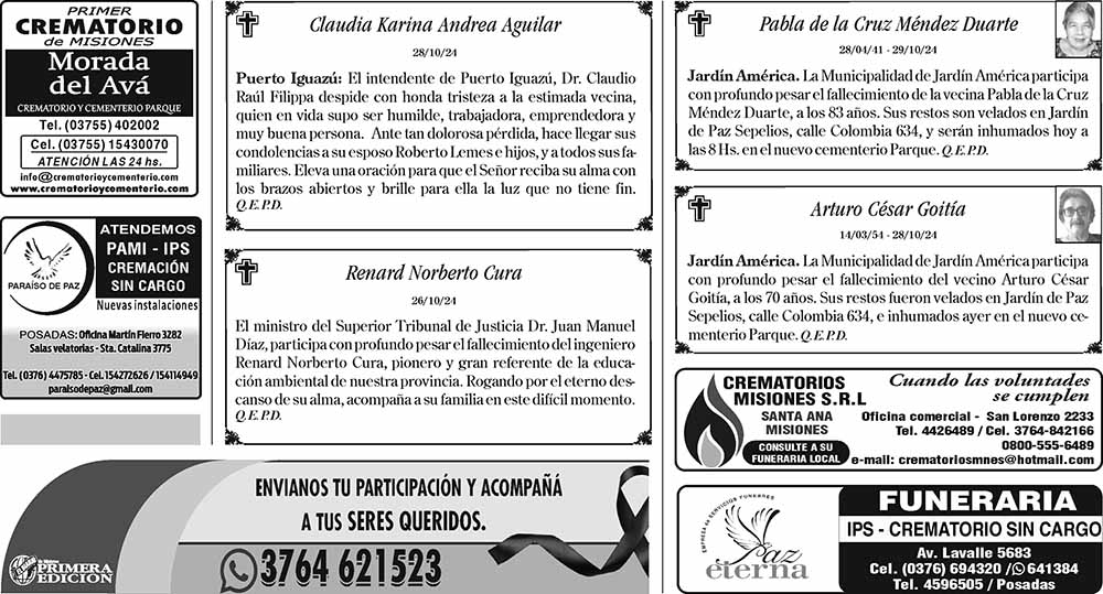 Fúnebres del Miércoles 30 de Octubre de 2024