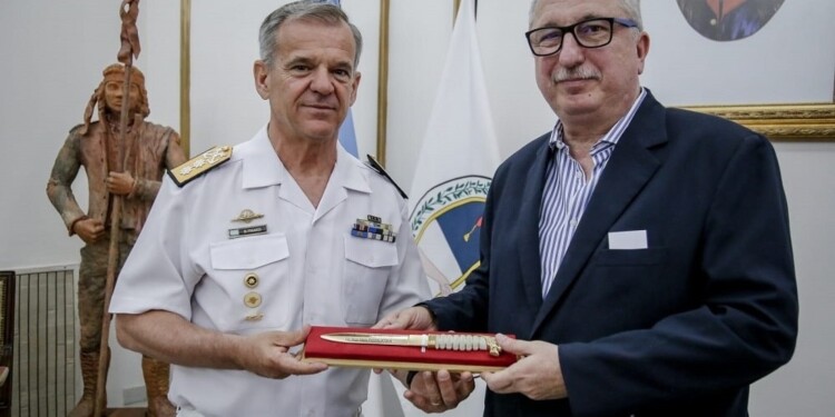 Como gesto de cortesía, el Contralmirante Finardi y el director Lucero entregaron a Passalacqua una réplica de una espada y una medalla del Liceo Naval Militar “Almirante Storni”.