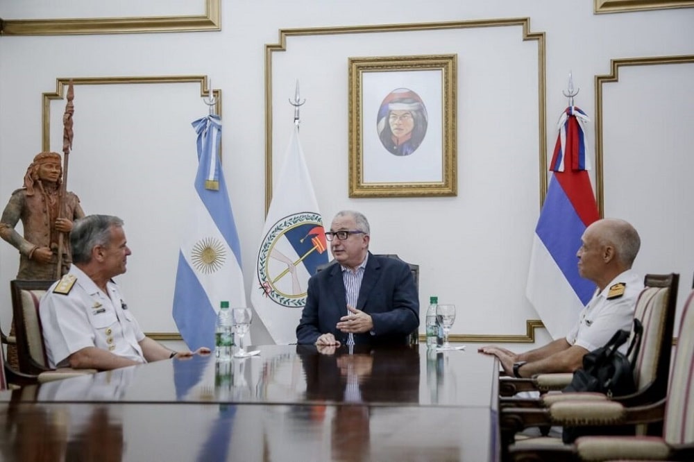 El gobernador Hugo Passalacqua, se reunió con el Comandante del Área Naval Fluvial (ANFL) de la Armada Argentina, Contraalmirante Daniel Francisco Finardi, quien es responsable de la seguridad de la hidrovía Paraná-Paraguay. También formó parte del encuentro realizado, este jueves, en Casa de Gobierno, el director del Liceo Naval Militar “Almirante Storni”, Martín Rodolfo Lucero.