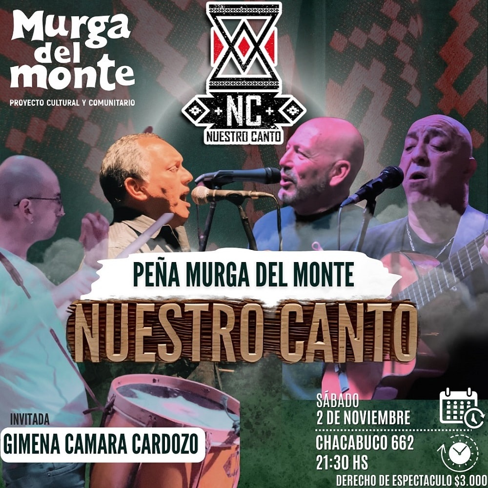 El grupo Nuestro Canto ofrecerá este sábado a las 21.30, un espectáculo lleno de folclore argentino en la Murga del Monte (Chacabuco 662). Entrada: $3.000