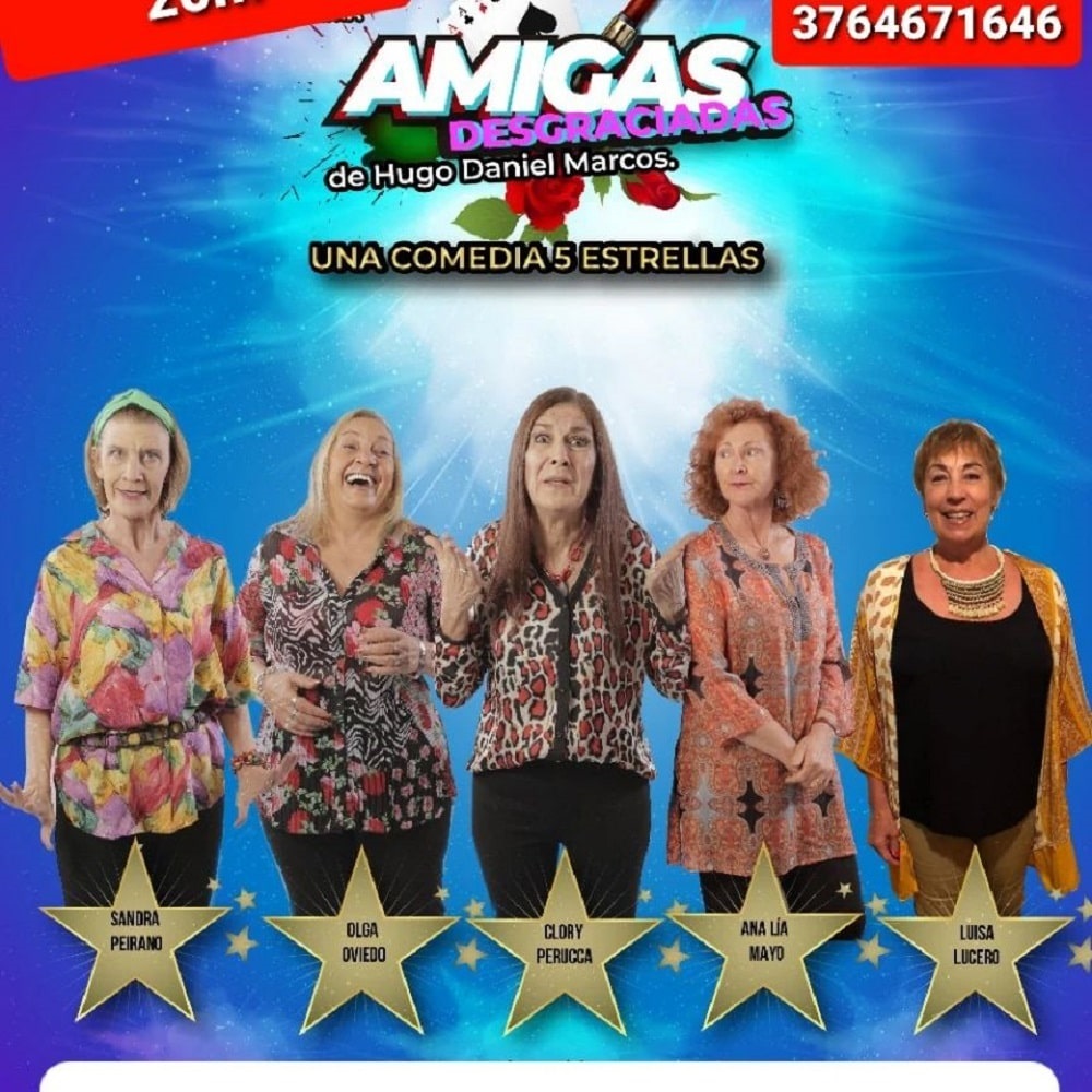 Vuelve este sábado, a las 21.30, una obra sobre mujeres que contarán las historias más insólitas enmarcadas en el velo de la “amistad”, en la Sala Tempo (Ramón García 559), de Posadas. Entrada: $7.000 al 376 4671646. Sólo compra anticipada 2 x $10.000 No se realizan reservas. No se permitirá el ingreso a la sala una vez comenzada la función. Para mayores de 15 años.