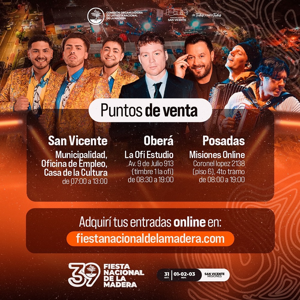 Desde ayer, 31 de octubre, hasta el 3 de noviembre se realiza la mayor exposición comercial, artesanal, forestal e industrial vinculada a la cadena productiva de la madera de la región. Todos los días habrá espectáculos. Adquirí tus entradas en fiestanacionaldelamadera.com