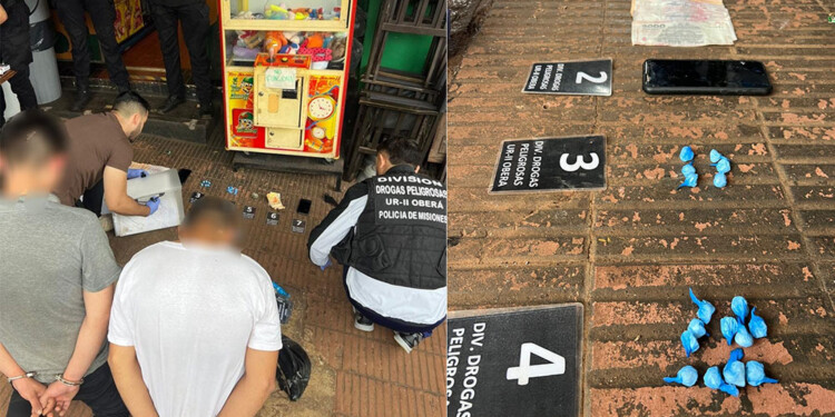 Dos hombres fueron detenidos en Oberá este sábado tras ser sorprendidos en posesión de drogas cerca de una zona concurrida. Los vecinos alertaron a la Policía mediante la línea de emergencia 911 al notar la actitud sospechosa de ambos sujetos, quienes, según el aviso, realizaban intercambios de sustancias en la intersección de la avenida Libertad y Maipú.