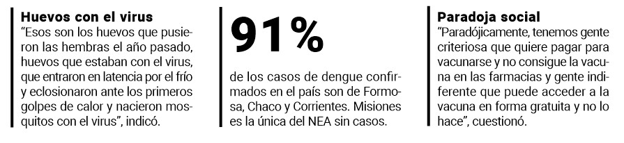 El médico infectólogo advirtió que el dengue vino para quedarse y que cada año es más corto el período de interbrote en el país. Salvo Misiones, las provincias del NEA son las que más casos confirmaron.