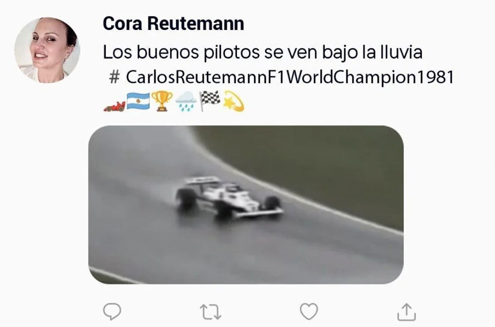 En su cuenta de X (ex Twitter), Reutemann compartió una imagen de su padre mientras disputaba el GP de Brasil de 1981 bajo una lluvia similar a la de este domingo con el siguiente mensaje: “Los buenos pilotos se ven bajo la lluvia”.