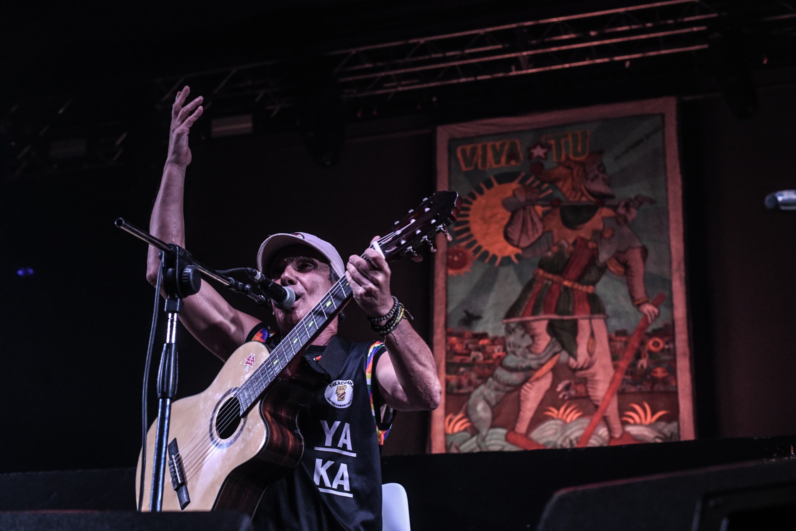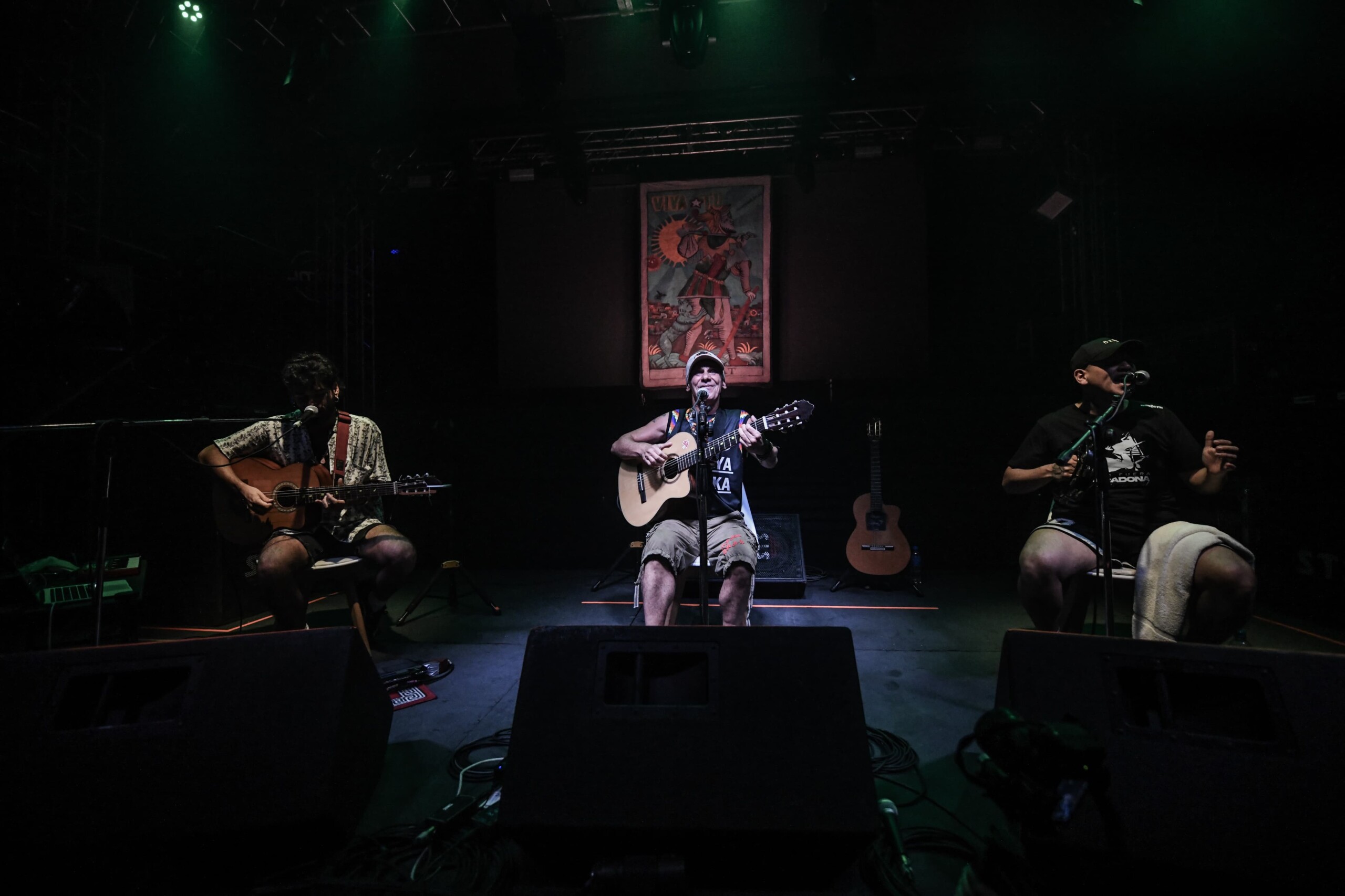 Kreiluz y un integrante de “Hae kuera, ñande kuera“, fueron los artistas locales que tuvieron espacio acompañados por el Manu Chao, trío.