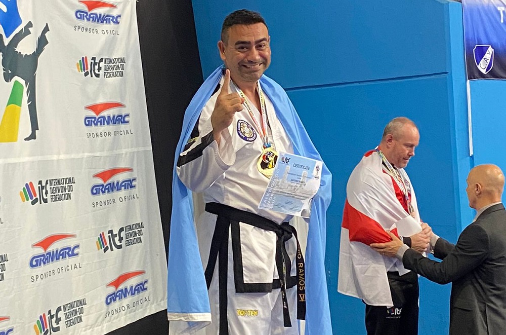 La Copa del Mundo de Taekwondo ITF realizada en Mar del Plata (Buenos Aires) del 28 de octubre al 3 de noviembre, tuvo a un misionero en lo más alto del podio. Se trata del posadeño Antonio Ramos (VI Dan), quien se coronó campeón mundial en roturas de poder +46 años, para alegría de la tierra colorada y la Argentina.