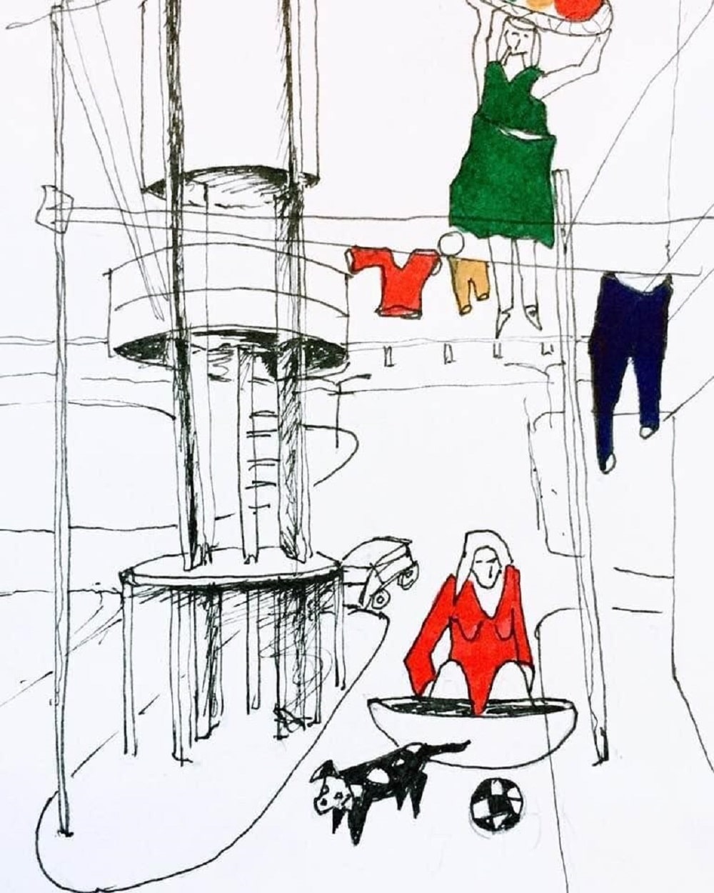 Además, a través de sus dibujos, pinturas, esculturas y maquetas, los artistas buscan interpelar, hacer reflexionar al público sobre la importancia del arte en la construcción de la ciudad. Sus obras tienen espíritu de croquis a mano alzada y colores planos y vibrantes. Con ellas, los artistas realizan una crítica al ritmo acelerado de la ciudad que el hombre moderno ha construido. Ciudades donde el consumo también acelerado afecta a la calidad de vida, donde se malgastan los recursos, se mercantilizan las relaciones y se producen desechos exacerbados.