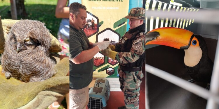 La Dirección de Defensa del Medio Ambiente de la Policía de Misiones logró rescatar a un Aradari Chico, un Tucán y un Alili Cucú o lechuza.