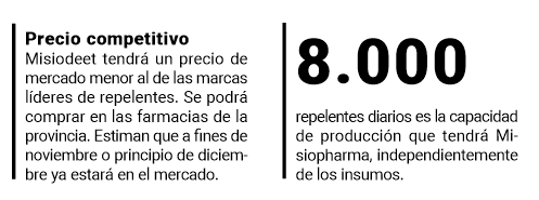 Misiopharma lanzará en breve al mercado, con un precio muy competitivo, el repelente “Misiodeet”. Según anticipó a PRIMERA EDICIÓN el ingeniero químico y gerente general de Misiopharma, Emiliano Díaz, el repelente en spray tendrá tres presentaciones “la tradicional para adultos con DEET como su principio activo, la pediátrica a base de icaridina y otra con DEET y reforzada con citronela para adultos para la gente que quiere usar en el campo o en momentos de pesca porque la citronela potencia la repelencia a los insectos”.