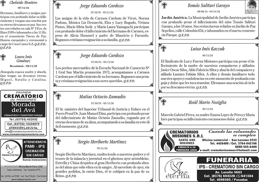 Fúnebres del Viernes 8 de Noviembre de 2024