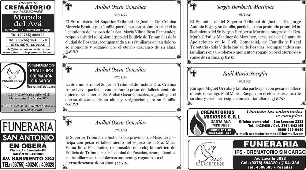 Fúnebres del Sábado 9 de Noviembre de 2024