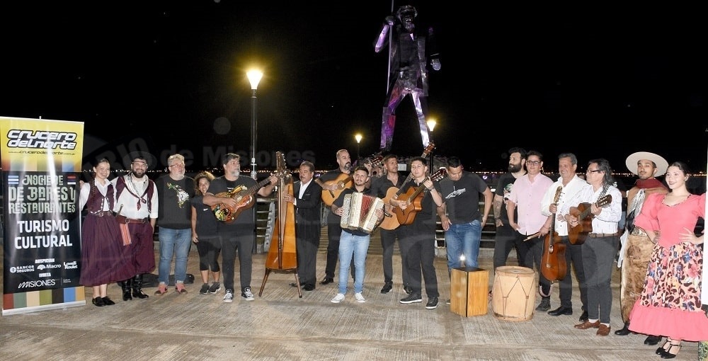 La jornada arrancó cerca de las 19 horas con una serenata en el Hospital Ramón Carrillo, luego el grupo de músicos y bailarines a bordo de dos combis recorrió distintos espacios brindando al público espectáculos en vivo. También hubo un momento para llevar a cabo un show urbano al pie del monumento de Andresito para luego partir a los distinto lugares de gastronómicos y de esparcimiento de la ciudad.