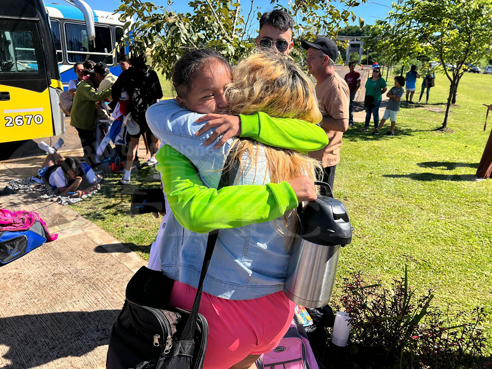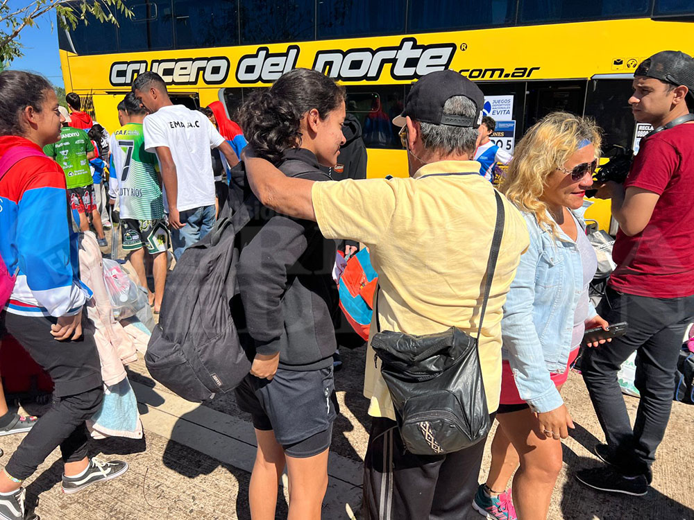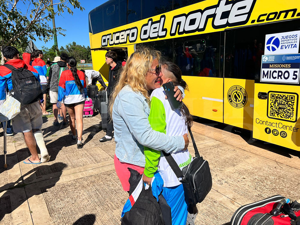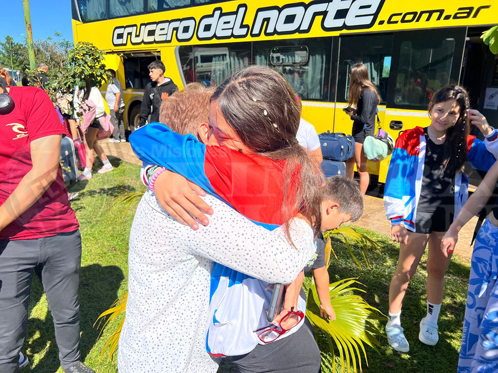 Cansados pero con las valijas repletas de medallas y experiencias inolvidables, los chicos no perdieron tiempo en abrazarse a los familiares y seres queridos que los aguardaban expectantes nada más descender de los colectivos.