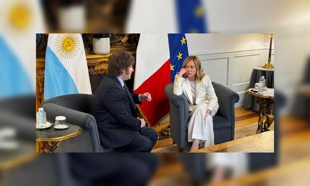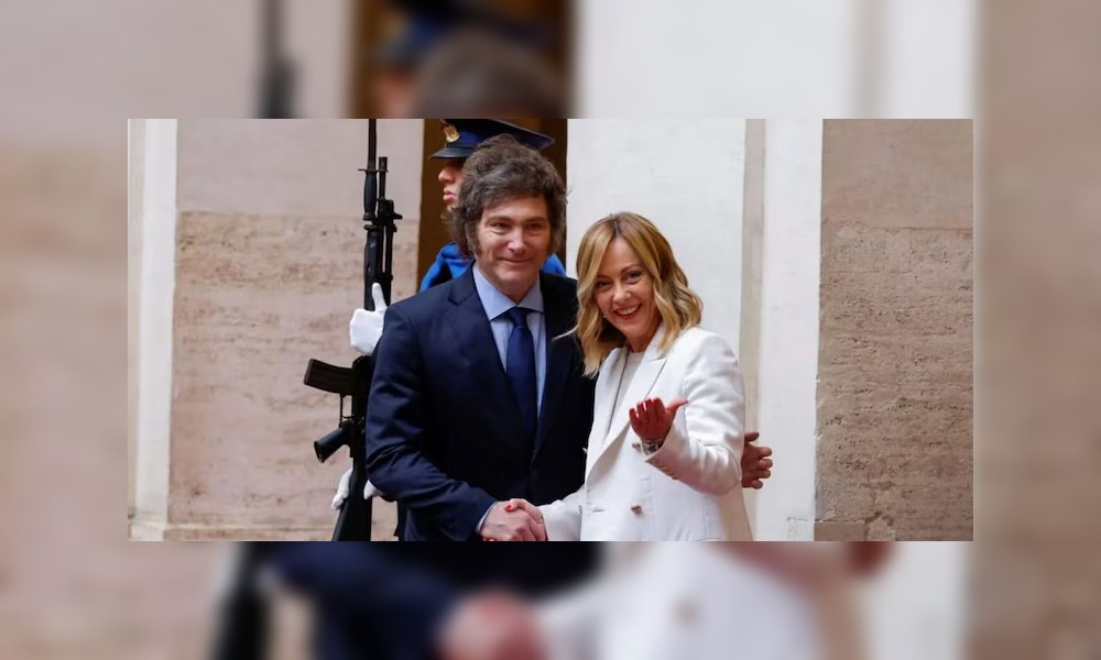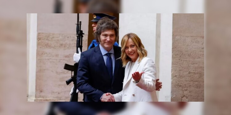 Giorgia Meloni, líder del partido de ultraderecha Hermanos de Italia, manifestó en repetidas ocasiones su afinidad ideológica con Milei y sus políticas económicas.