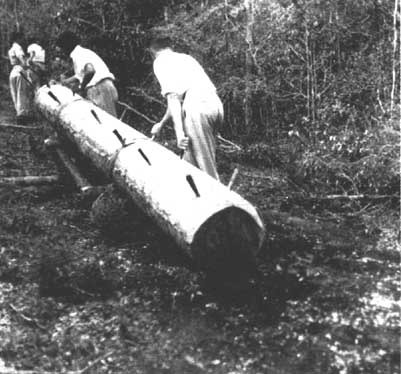 Los troncos eran transportados a las barrancas de los grandes ríos, donde luego eran arrojados a las aguas. Allí, personal entrenado los iba reuniendo en un recodo o bahía tranquila, atándolos de manera rústica a troncos transversales más finos, empleando sogas, alambres y hasta lianas y, a su vez, manteniendo siempre al conjunto unido al fuste de algún gran árbol de la ribera.