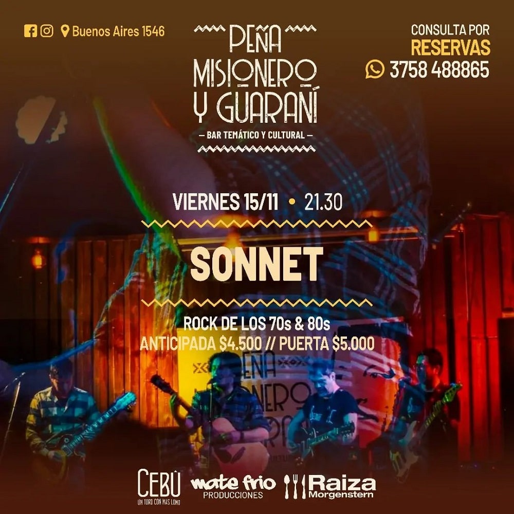 La banda se presentará, este viernes a las 21.30 horas, un nuevo show en el escenario de Misionero y Guaraní (Buenos Aires 1546), de Posadas. Entrada: Anticipadas $4.500 y en puerta $5.000. Reservas al 3758 488865.