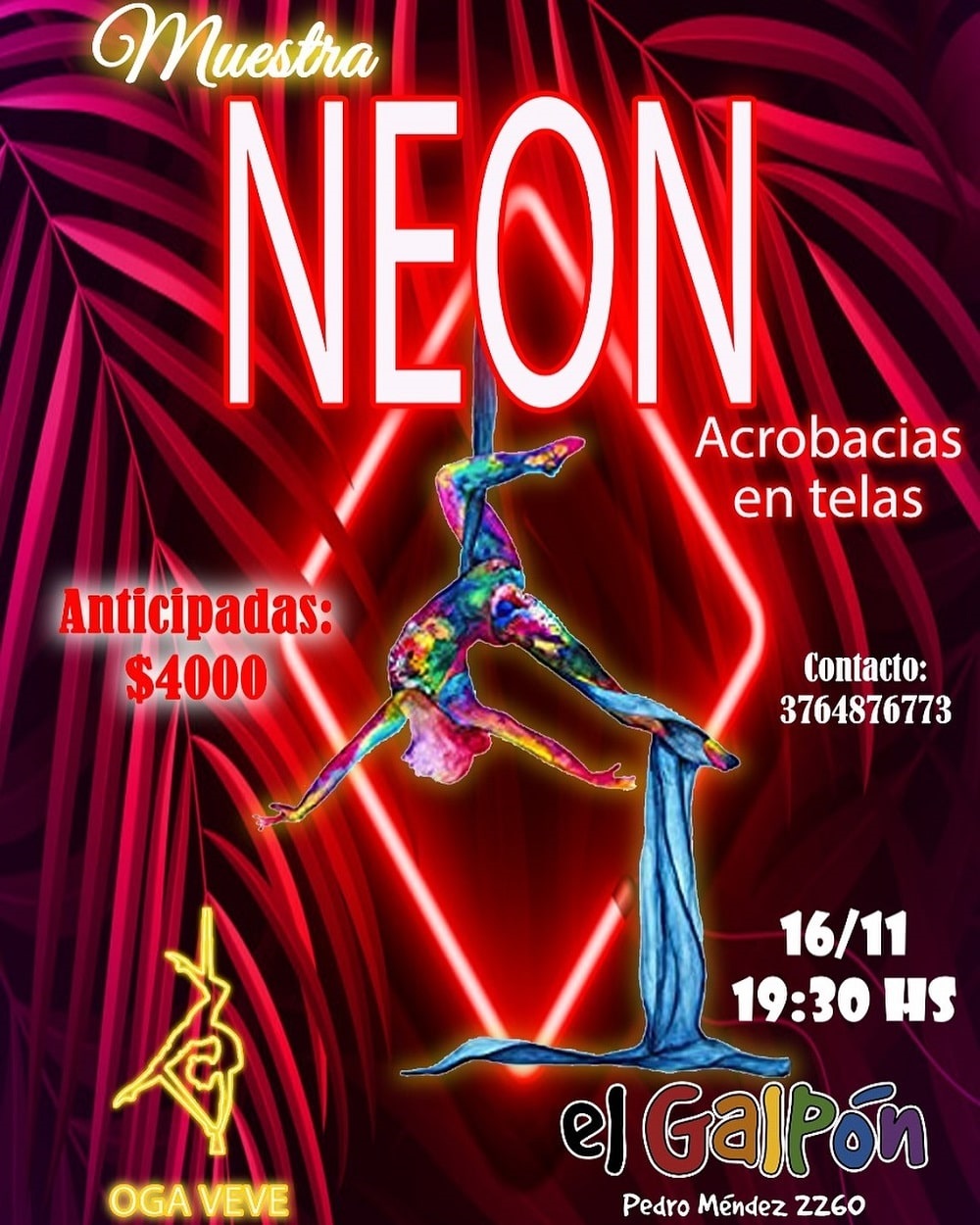 El taller de acrobacias Oga Veve presenta este sábado, a las 19.30 horas, una noche a puro color en el Galpón de la Murga de la Estación (Pedro Méndez 2260), Posadas. Entrada: anticipada $4.000 al 376 4876773.