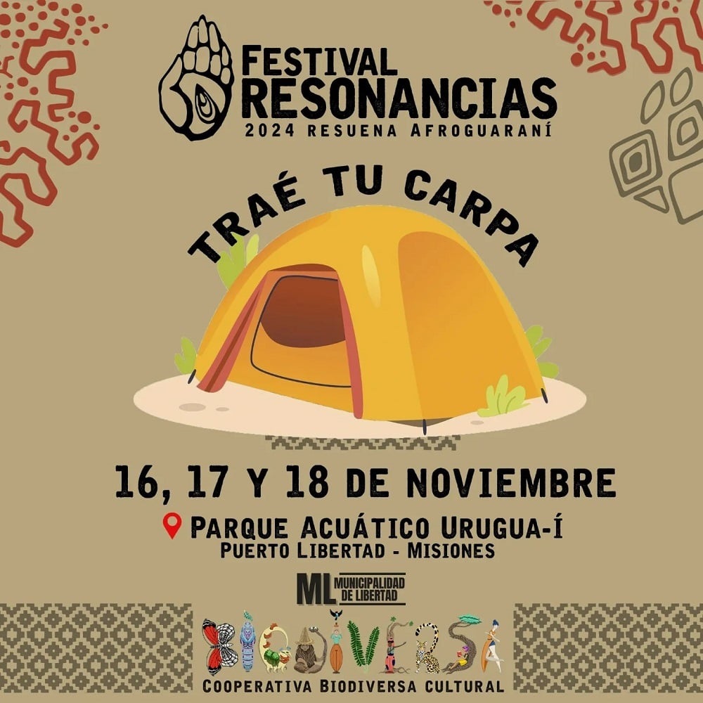 Del sábado al lunes, llega esta expresión artística de la triple frontera, con talleres de danza, percusión, música, teatro, cerámica, tallado en madera guaraní, expresión corporal afro brasilera, performance afroamericana, entre otras propuestas en el Parque Acuático Urugua-í. Entrada: libre. Talleres y performances, a la gorra consciente. Contacto al WhatsApp 11 6767-8050, al IG @festivalresonancias o por e-mail a [email protected]
