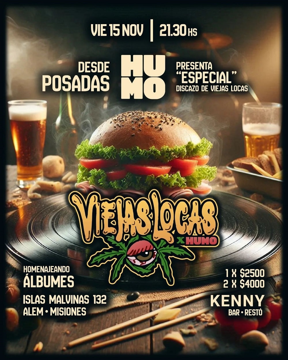 Este viernes, a las 21.30 horas, se llevará a cabo un recital homenajea al álbum Especial de Viejas Locas, en el bar Kenny Bar (Islas Malvinas 132). Entrada: 1 x $2.500 o 2 x $4.000.