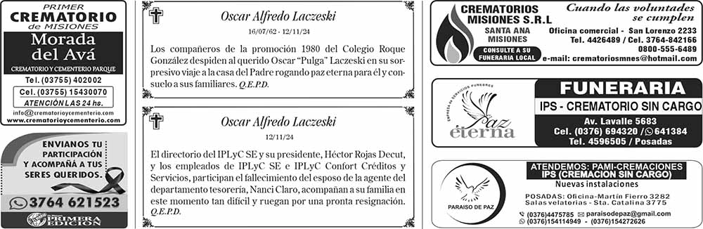 Fúnebres del Jueves 14 de Noviembre de 2024
