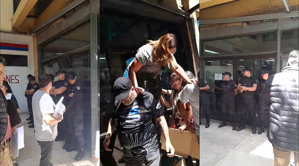 La titular de CTA Misiones, Mónica Gurina, contó con un video esta situación en sus redes sociales, donde mostró el testimonio de una directora de Candelaria que debió salir por una ventana del edificio por el cierre total.