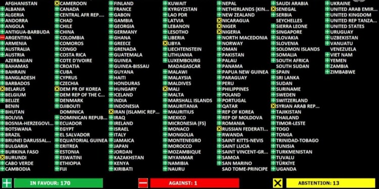 El Gobierno del presidente Javier Milei se desmarcó de sus pares de los EEUU e Israel que conformaron un bloque de 170 países que impulsó esa declaración mundial.